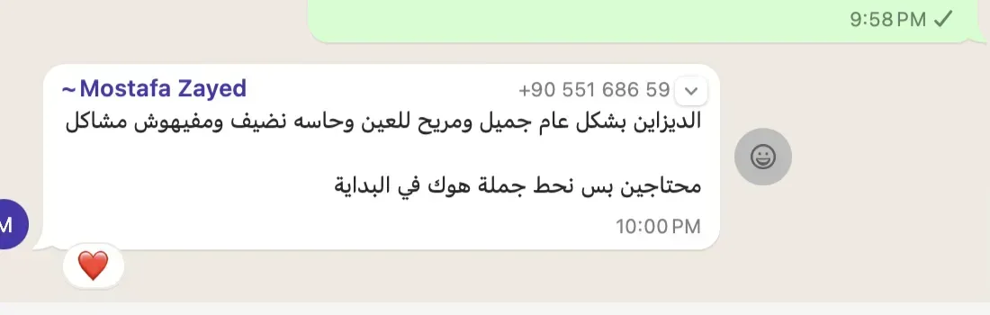 "كل الشكر للاستاذ محمد عرفه على ماقدمه لنا من تصميم فانل وصفحات هبوط وايميلات واتوميشن لمتجرنا وكانت حقيقة افضل مما توقعت من تصميم ومن نتائج تحويل واعطتنى نتائج ممتازه ويسعدني أنني اتخذت هذا القرار"